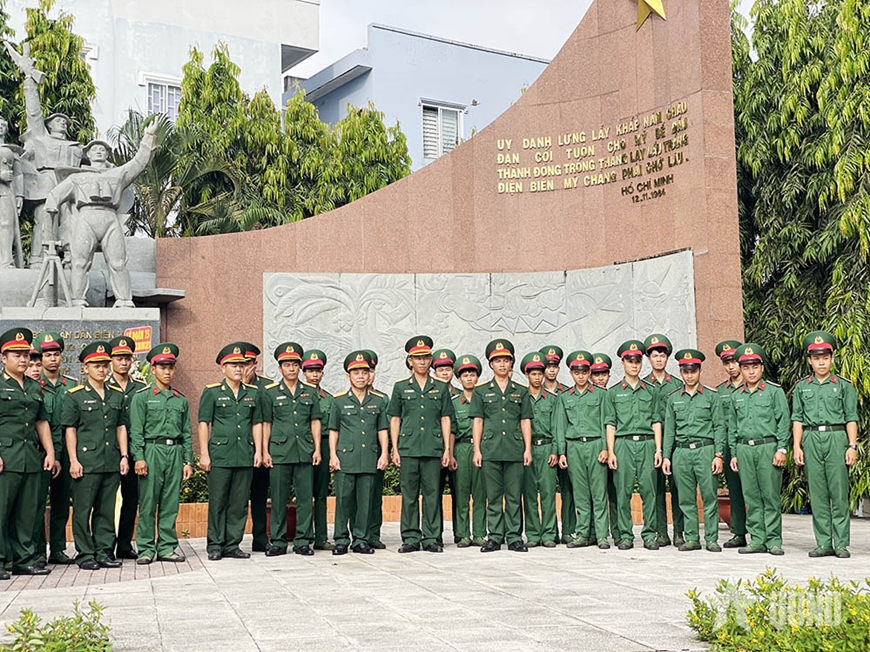 | Cán bộ, chiến sĩ Lữ đoàn Pháo binh 75 về nguồn tại di tích lịch sử. |
