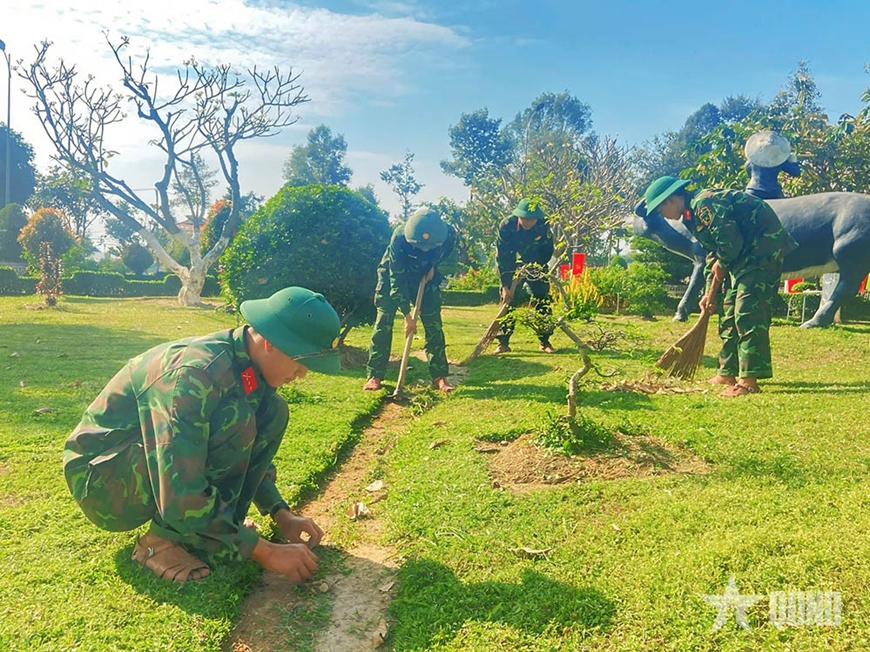| Tuổi trẻ Lữ đoàn Pháo binh 75 chăm sóc vườn cây cảnh. |