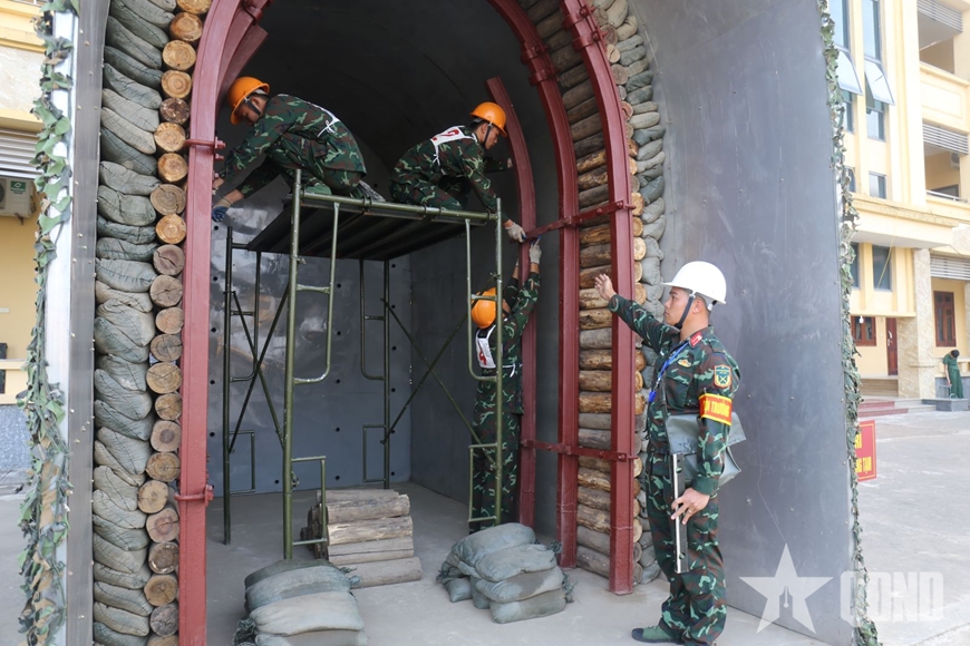 | Đội xây dựng công trình chiến đấu (Xưởng 10 Công binh) luyện tập tham gia Hội thao Công binh toàn quân năm 2026. |