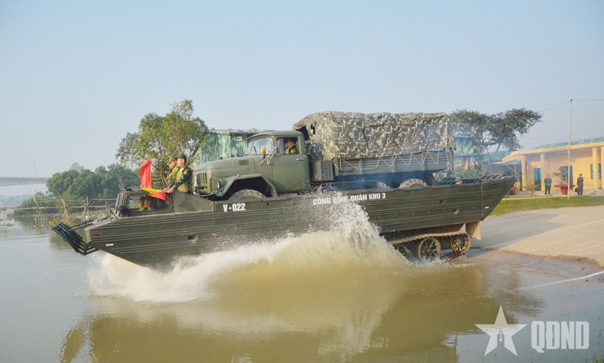| Đội bảo đảm vượt sông (Lữ đoàn 513) luyện tập tham gia Hội thao Công binh toàn quân năm 2026. |