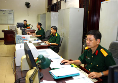 | Ứng dụng công nghệ thông tin vào công tác tổng hợp, phân tích tình hình và hành chính phục vụ tại Văn phòng Bộ Tổng tham mưu. Ảnh: Văn Phong |