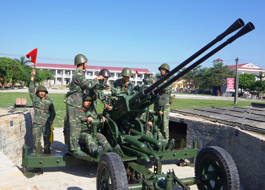 Cùng chỉ huy đơn vị chúng tôi xuống trận địa trực chiến của Đại đội 9, Tiểu đoàn 3 và kiểm tra kíp trực sẵn sàng chiến đấu của bộ đội. Trên thao trường cán bộ, chiến sĩ vẫn đang miệt mài luyện tập phương án đánh địch đổ bộ đường không, thực hành chiến đấu về chuyển cấp bắt, bám mục tiêu. Cả trận địa hừng hực khí thế, rền vang những khẩu lệnh dõng dạc, to rõ của người chỉ huy, cùng với đó là những động tác nhanh chóng, thuần thục, dứt khoát của các pháo thủ.