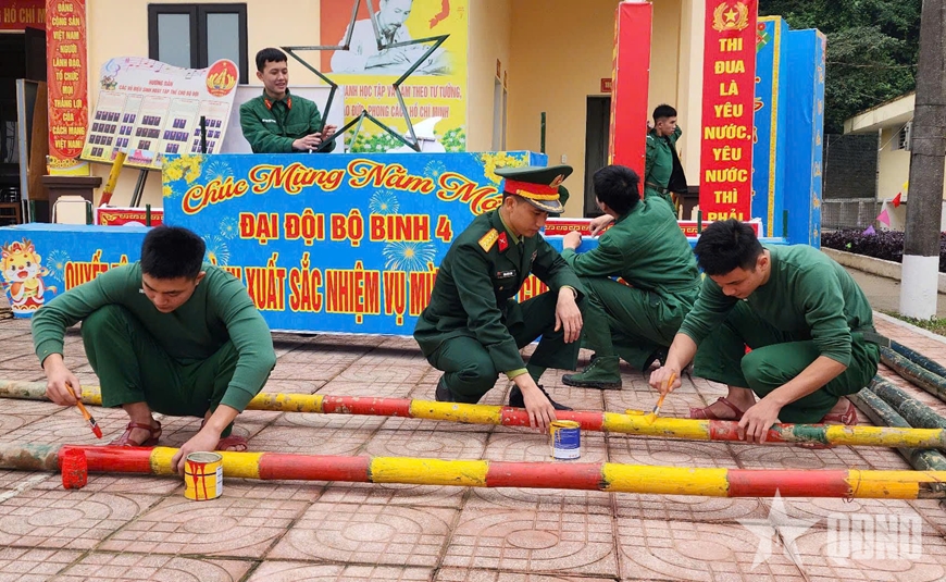 Những ngày cận tết Bính Ngọ 2026, chúng tôi về Trung đoàn 841 đúng vào dịp toàn đoàn vị đang ra sức thi đua “Mừng Đảng, mừng Xuân, ra quân quyết thắng”, thiết thực chào mừng thành công Đại hội XIV của Đảng và chào xuân mới Bính Ngọ 2026. Toàn đơn vị vừa chuẩn bị tất cả mọi mặt cho đón tết cổ truyền, vừa tích cực củng cố, tu sửa hệ thống doanh trại, khuôn viên cảnh quan môi trường, mô hình học cụ huấn luyện... Sắc thắm từ những chậu hoa, màu đỏ rực của cờ, băng rôn, khẩu hiệu hành động càng thêm tô điểm cho đơn vị những gam màu tươi mới, bắt mắt.