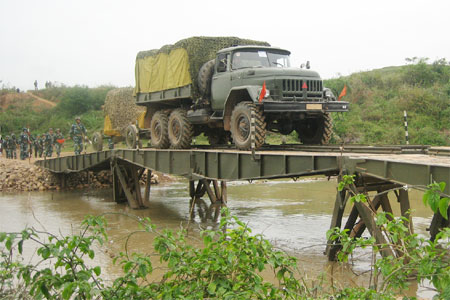Bộ đội Quân đoàn 2 thực hành vượt sông trong diễn tập.