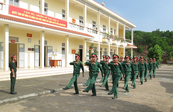 Huấn luyện Điều lệnh đội ngũ của cán bộ, chiến sĩ Tiểu đoàn 3 (Trung đoàn 2, Sư đoàn 395, Quân khu 3). |