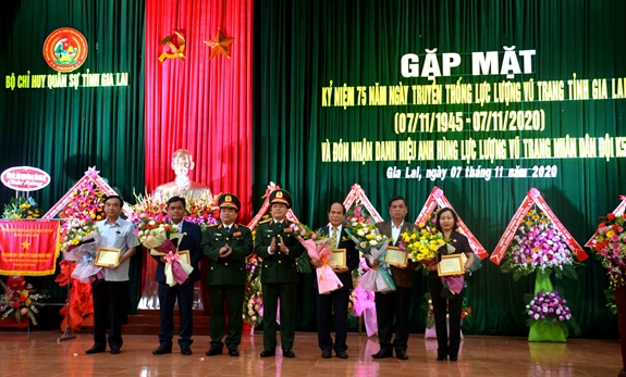 Nhân dịp này, Thủ tướng Chính phủ tặng Bằng khen cho Đại tá Lê Xuân Hòa, nguyên Chỉ huy trưởng Bộ CHQS tỉnh Gia Lai vì đã có những thành tích xuất sắc trong công tác dân vận giai đoạn 2011-2020; Bộ trưởng Bộ Quốc phòng tặng Kỷ niệm chương “Vì sự nghiệp xây dựng Quân đội nhân dân Việt Nam” cho các đồng chí lãnh đạo tỉnh Gia Lai qua các thời kỳ.