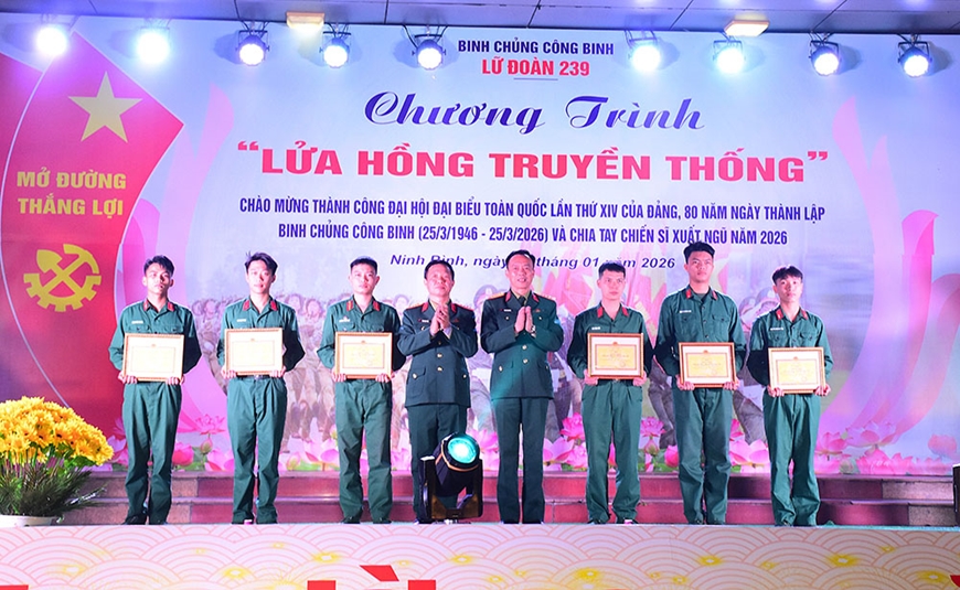 Trân trọng tình cảm của chiến sĩ trước ngày xuất ngũ, Đại tá Phạm Ngọc Tuân, Chính ủy Lữ đoàn 239 khẳng định: “Trong hai năm qua, Lữ đoàn đã giành được nhiều thành tích xuất sắc, được Bộ Quốc phòng, Binh chủng Công binh ghi nhận, khen thưởng. Thành tích đó có sự đóng góp, cống hiến của cán bộ, đoàn viên, thanh niên, đặc biệt là có sự đóng góp của gần 90 chiến sĩ chuẩn bị hoàn thành nghĩa vụ quân sự. Qua chương trình “Lửa hồng truyền thống”, Đảng ủy, chỉ huy Lữ đoàn thể hiện sự quan tâm đến các chiến sĩ, đồng thời tiếp thêm niềm tin, ý chí và trách nhiệm cho quân nhân xuất ngũ. Mong rằng mỗi đồng chí khi trở về luôn phát huy tốt truyền thống đơn vị, phẩm chất cao đẹp Bộ đội Cụ Hồ, ý chí, khát vọng vươn lên của tuổi trẻ, tích cực lập thân, lập nghiệp, góp sức xây dựng gia đình, địa phương phát triển”.