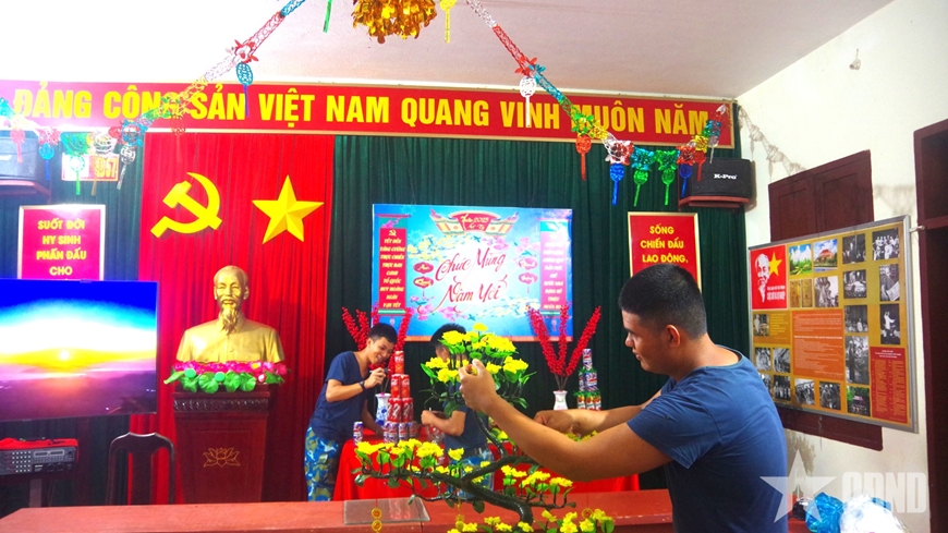 | Chiến sĩ Trạm radar 44 trang trí Tết. |