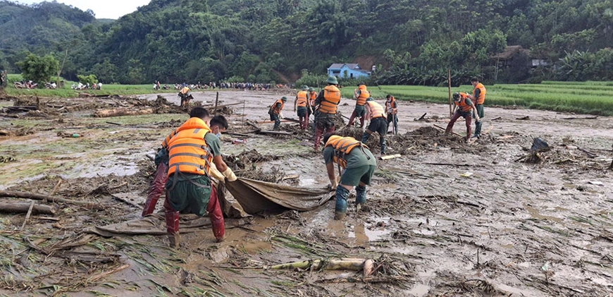 | Cán bộ, chiến sĩ Sư đoàn 316 tham gia giúp dân khắc phục hậu quả thiên tai, tìm kiếm cứu nạn sau bão số 3 (tháng 9-2024) tại tỉnh Lào Cai. |