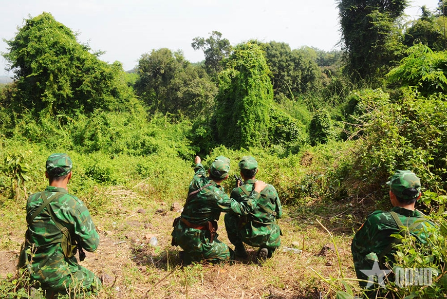 Theo chân các chiến sĩ tuần tra dọc tuyến biên giới, chúng tôi cảm nhận được không khí của núi rừng sang xuân và tinh thần vì nhân dân phục vụ. Sau mệnh lệnh xuất quân tuần tra của Thiếu úy Nguyễn Phú Quý, Chốt trưởng Chốt số 5, Đồn Biên phòng cửa khẩu Lộc Thịnh (Bộ đội Biên phòng tỉnh Đồng Nai), tổ tuần tra gồm hàng chục cán bộ, chiến sĩ của các lực lượng đã nhanh chóng lên đường làm nhiệm vụ. Dưới ánh nắng ban mai xuyên qua tán lá của cánh rừng già, tổ tuần tra vượt dốc cao, lội suối, băng rừng để thực hiện buổi tuần tra đường biên, cột mốc.