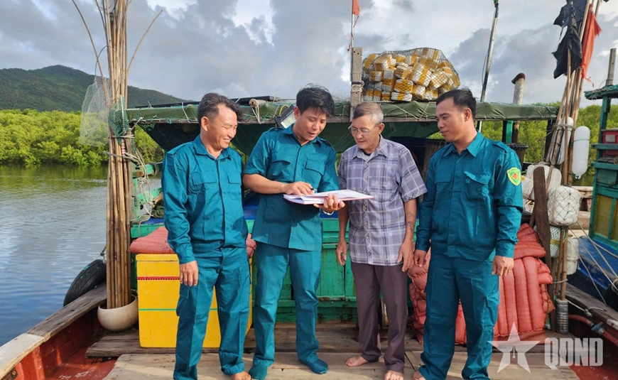 Những ngày ảnh hưởng của bão số 9 (Ragasa), tàu thuyền của ngư dân trở về neo đậu tránh trú tập trung khá đông tại cảng cá Thạch Kim, xã Lộc Hà, tỉnh Hà Tĩnh. Tranh thủ từ sáng sớm, các đồng chí trong Ban CHQS xã đã trực tiếp đến từng phương tiện tàu thuyền để rà soát, nắm tình hình di, biến động của các thanh niên trong độ tuổi nhập ngũ - những lao động tham gia làm ăn trên biển. Trên cơ sở đó, tuyên truyền, phổ biến Luật Nghĩa vụ quân sự (NVQS) cho các thanh niên và thân nhân gia đình để họ nhận thức và chấp hành.