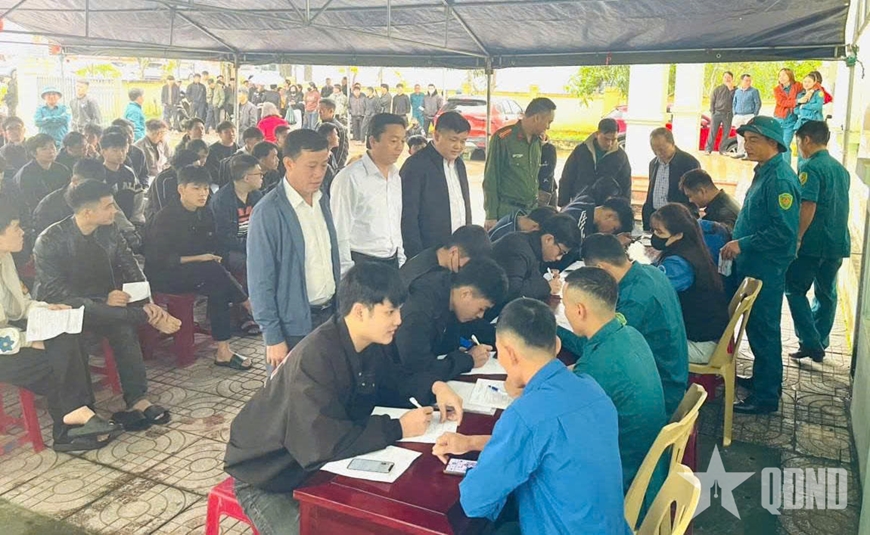 | Cấp ủy, chính quyền và các ban, ngành đoàn thể xã Hương Khê (Hà Tĩnh) động viên, theo dõi công tác đăng ký, khám sơ tuyển NVQS tại trạm y tế. |