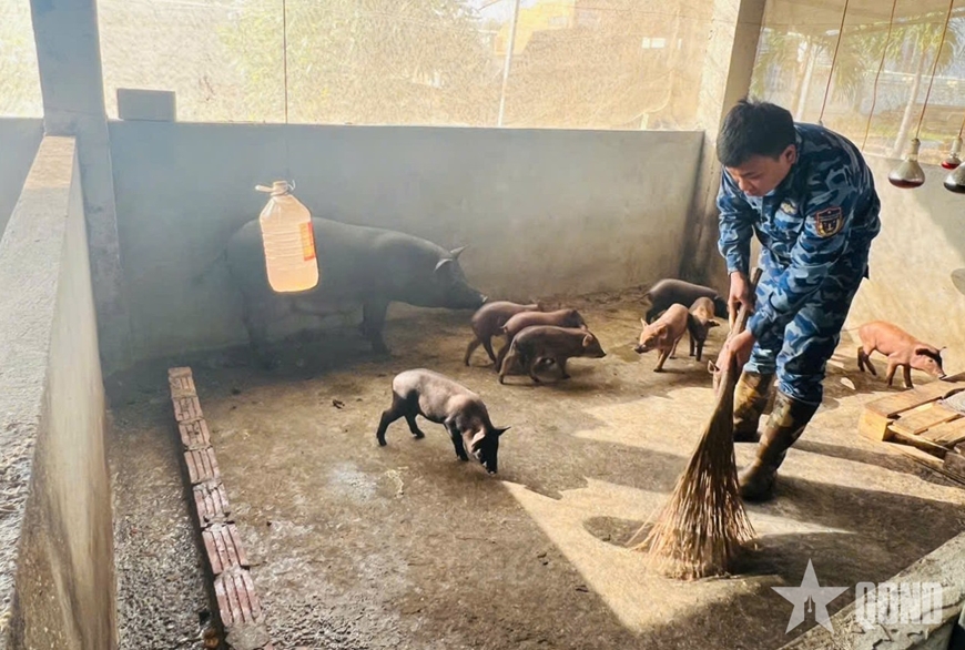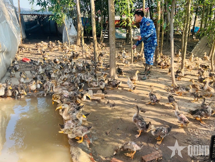 Cán bộ, chiến sĩ Hải đoàn 11 chăm sóc gà vịt, đàn lợn.