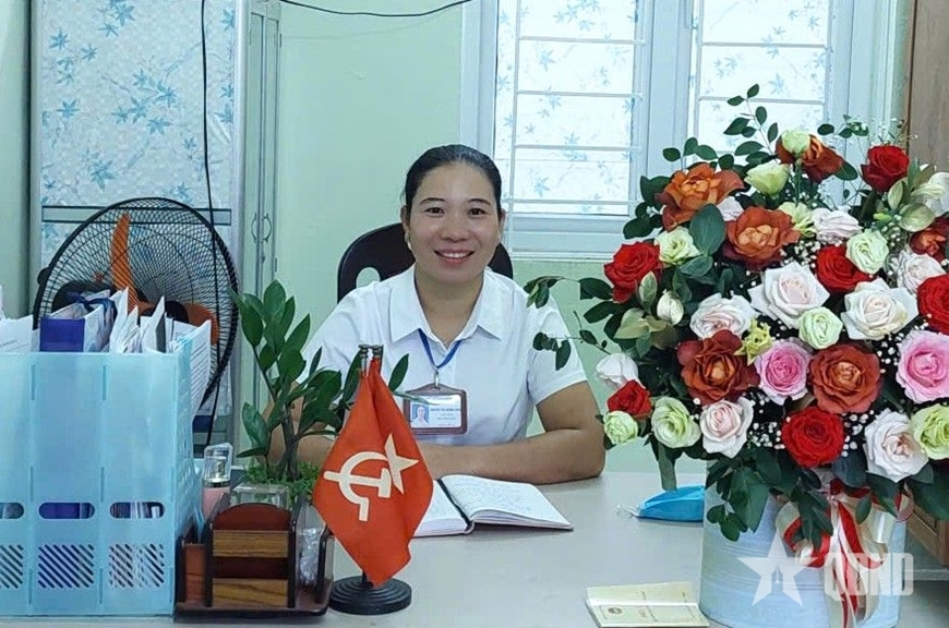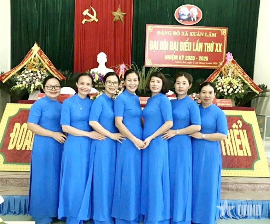 | Chị Nguyễn Thị Hương Giang (ngoài cùng, bên phải sang) chụp ảnh cùng đồng nghiệp. |