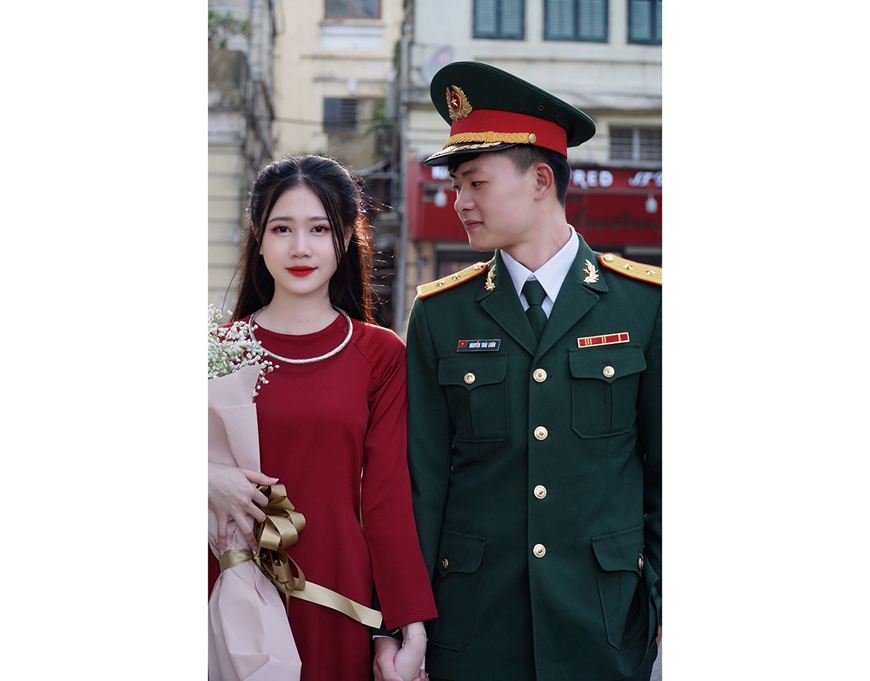 | Trung úy Nguyễn Thái Luân và bạn gái Khương Thị Kim Anh. |