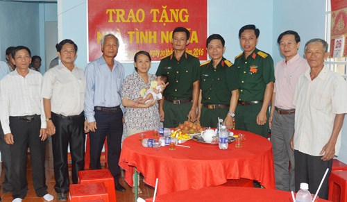 Đại diện Sư đoàn 9 và Công ty Cổ phần Cao su Tây Ninh tại lễ bàn giao nhà tình nghĩa tặng Trung úy Võ Thành Tới.