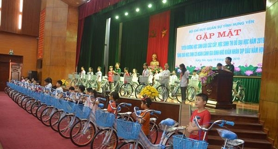 LLVT tỉnh Hưng Yên trao xe đạp tặng các cháu học sinh vượt khó học giỏi đầu năm học 2019-2020. |