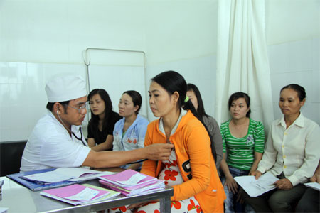 | Bác sĩ Bệnh viện Quân y 4 khám bệnh cho người dân địa phương. |