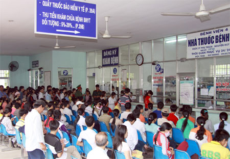 | Bệnh nhân làm thủ tục khám, chữa bệnh tại Bệnh viện Quân y 4. |