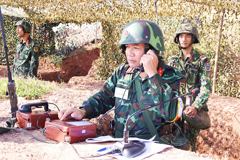 | Chỉ huy đơn vị thực hiện nhiệm vụ trong diễn tập. |