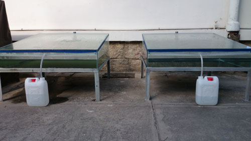 | Thử nghiệm thiết bị lọc nước. Ảnh: Công Thức. |