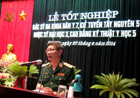 GS, TS, Trung tướng Nguyễn Tiến Bình chúc mừng những tân bác sĩ, dược sĩ đã hoàn thành xuất sắc chương trình học tập của mình; đồng thời, đồng chí cũng bày tỏ mong muốn, những tân bác sĩ, dược sĩ luôn giữ gìn được cốt cách, tinh thần thanh bạch của của người thầy thuốc, trở thành những cán bộ tốt của ngành y tế, góp phần vào sự nghiệp chăm sóc và bảo vệ sức khỏe bộ đội và nhân dân.