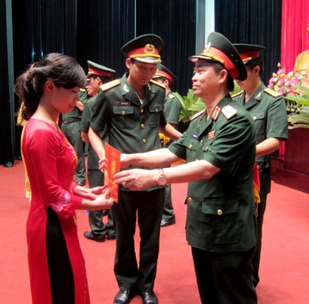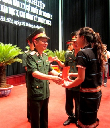 GS, TS, Thiếu tướng Đồng Khắc Hưng, Phó giám đốc Học viện Quân y trao bằng tốt nghiệp cho các học viên.