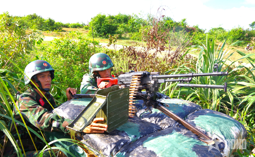 | Khẩu đội đại liên của Trung đoàn 143 thực hành bắn chiến đấu trong diễn tập. |