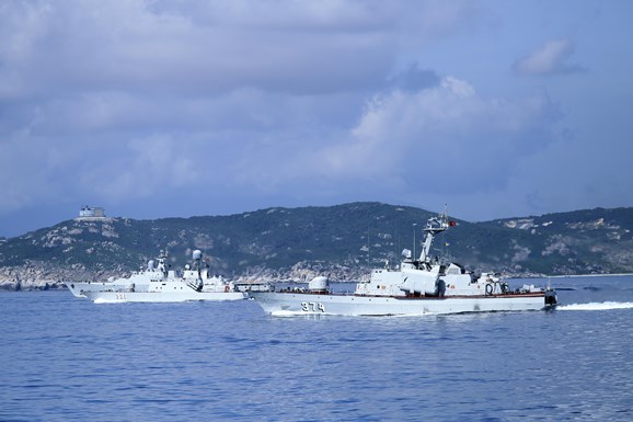 Biên đội tàu Lữ đoàn 162, Vùng 4 Hải quân thực hiện nhiệm vụ trên biển.