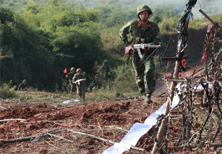 Bộ đội Sư đoàn 312 (Quân đoàn 1) diễn tập tác chiến. Ảnh: PHAN ANH