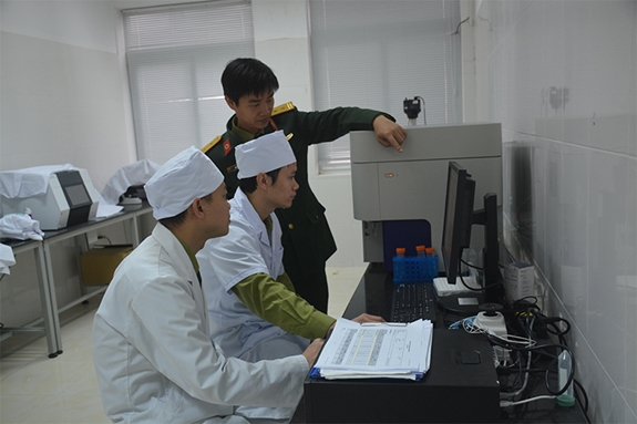 Cán bộ, giảng viên Bộ môn Sinh lý bệnh trao đổi chuyên môn tại phòng thí nghiệm. |