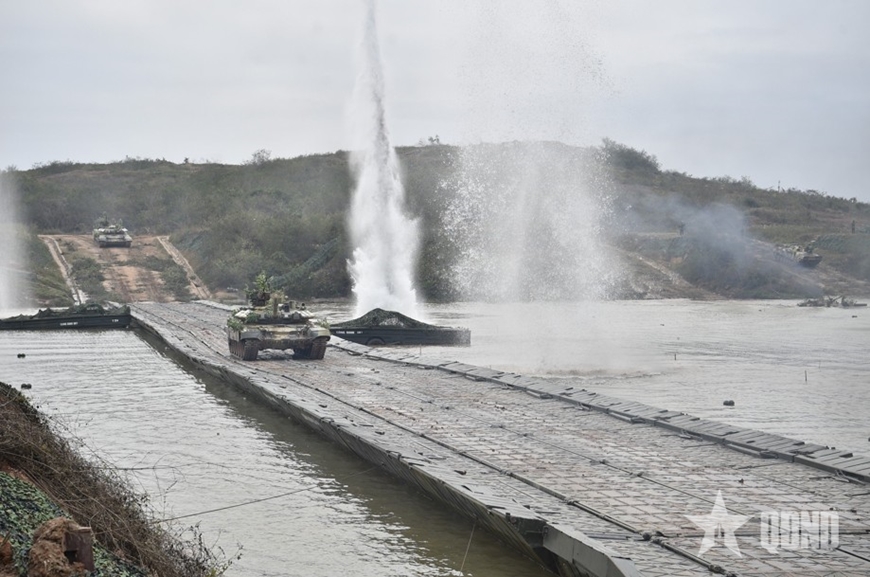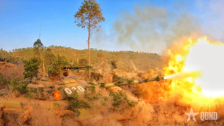 Xe tăng của Quân đoàn 12 tham gia diễn tập hiệp đồng quân binh chủng có bắn đạn thật, tháng 12-2023. Ảnh: HẢI HUY |