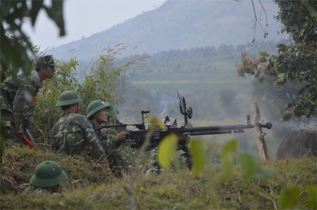 | Khẩu đội súng máy 12,7mm của LLVT tỉnh Gia Lai tiêu diệt mục tiêu. |