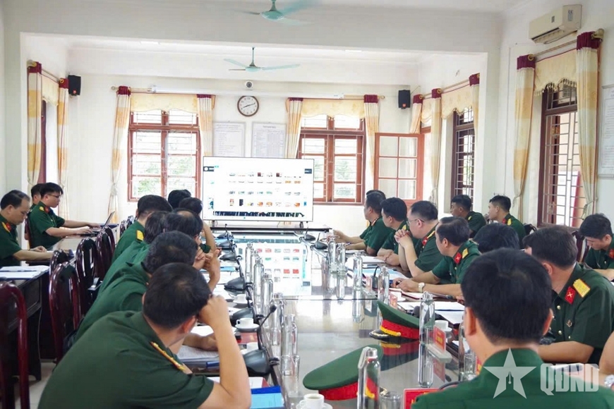 Sư đoàn 316 (Quân khu 2) tổ chức hội nghị thông qua các phần mềm chuyển đổi số của đơn vị. Ảnh: TUẤN HÙNG