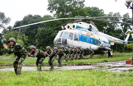 Cán bộ, chiến đấu viên Đội 12, Lữ đoàn Đặc công 113 luyện tập phương án đổ bộ đường không chống khủng bố.