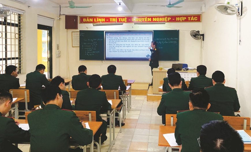 | Giảng viên Khoa Chỉ huy tham mưu kỹ thuật trong giờ lên lớp. Ảnh do đơn vị cung cấp |
