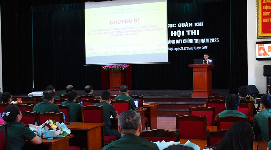 Hội thi cán bộ giảng dạy chính trị của Cục Quân khí được tổ chức ở cấp cơ sở với hơn 300 cán bộ tham gia, qua đó lựa chọn 53 đồng chí thi cấp Cục. Đối tượng dự thi đa dạng gồm các đồng chí bí thư đảng ủy bộ phận, bí thư chi bộ, trợ lý chính trị các đơn vị. Hầu hết thí sinh có tuổi đời, tuổi quân cao, lại bị chi phối bởi nhiều nhiệm vụ và các hoạt động của đơn vị nhưng với tinh thần trách nhiệm, 100% cán bộ dự thi đã có nhiều sáng tạo, đổi mới để thể hiện tốt nhất nội dung thi giảng dạy chính trị.