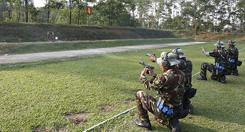| Xạ thủ các nước ASEAN tích cực luyện tập làm quen với thao trường chờ ngày khai cuộc. |