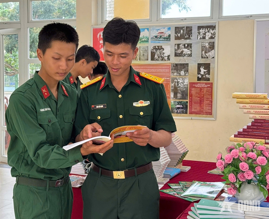 | Cán bộ, chiến sĩ Tiểu đoàn 162 tham gia ngày hội đọc sách tại đơn vị. |