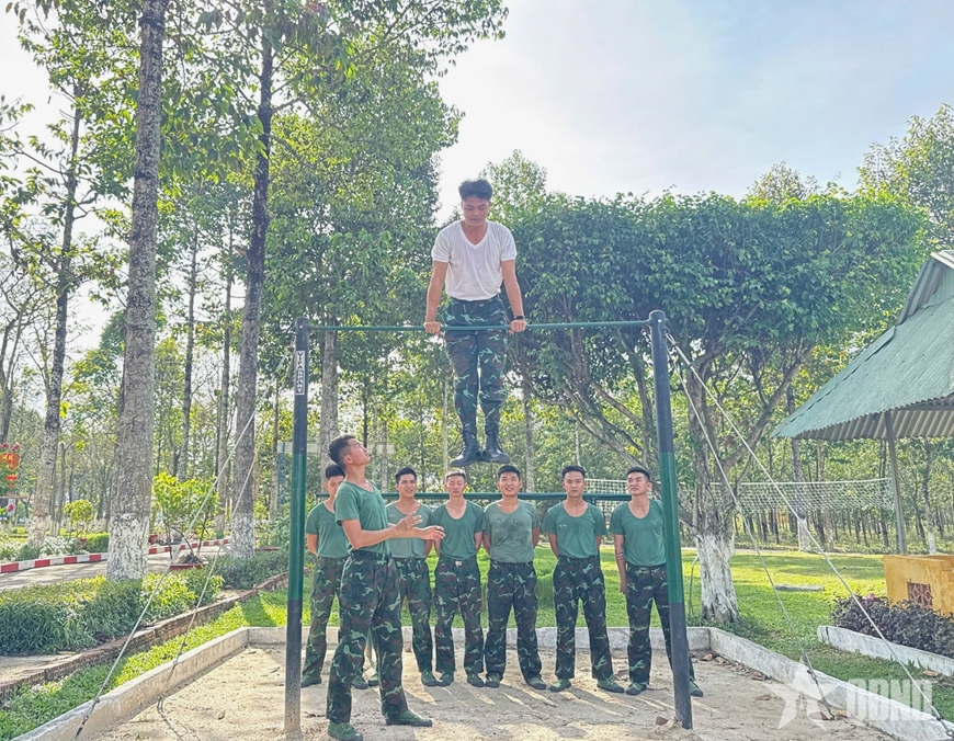 Để thích ứng cường độ huấn luyện cao, đơn vị còn tổ chức luyện tập thêm thể thao, phát triển thể lực toàn diện như chạy dài, nâng tạ, bóng chuyền, xà đơn… Tất cả đều nhằm hình thành cho người lính một sức bền bỉ, dẻo dai trong mọi điều kiện.