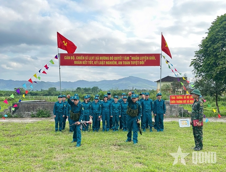 | Dân quân tự vệ xã Hương Đô, tỉnh Hà Tĩnh tham gia hội thao nội dung ném lựu đạn. |