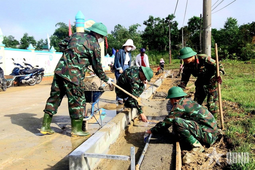 | Cán bộ, nhân viên Đoàn Kinh tế - Quốc phòng 92 tham gia giúp địa phương xây dựng nông thôn mới. |