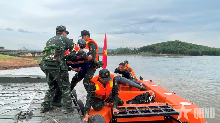 | Lữ đoàn Công binh 414 huấn luyện cứu người bị nạn. |