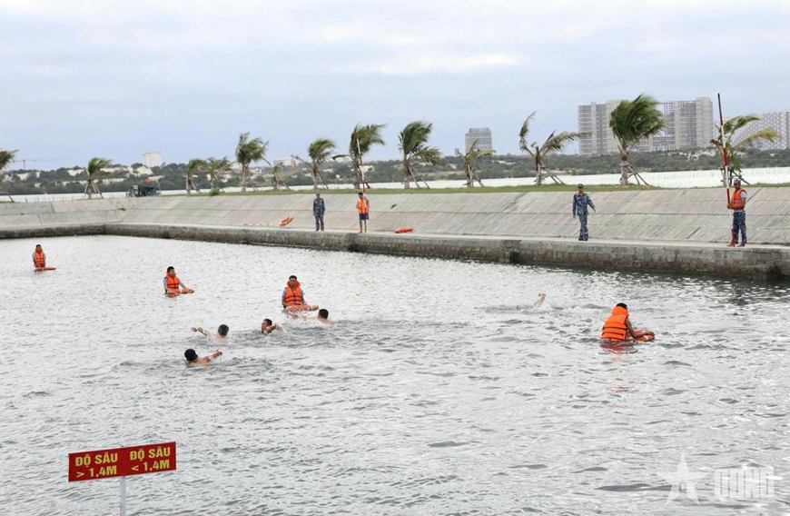 | Huấn luyện bơi cho bộ đội. |