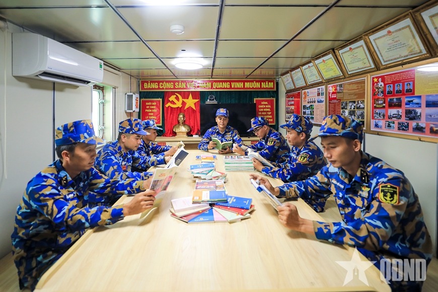 | Hoạt động đọc sách, báo trên Tàu Trường Sa 10, Hải đội 1, Lữ đoàn 125. |