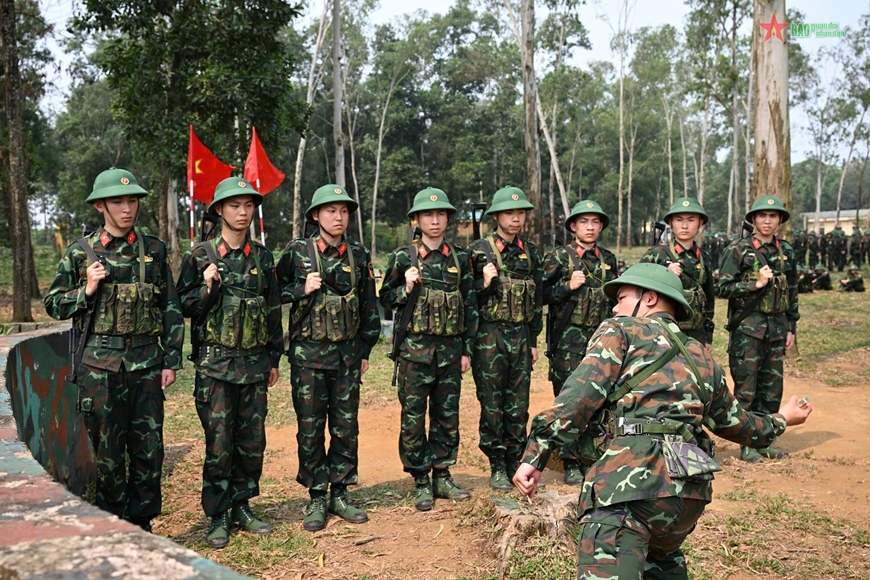 Tại khuôn viên Đại đội Huấn luyện 12, Tiểu đoàn 4, các chiến sĩ trẻ tích cực luyện tập động tác điều lệnh đội ngũ, đi đều, đứng lại, đổi chân, giậm chân... Với khẩu lệnh to, rõ, dứt khoát của cán bộ, những động tác của CSM càng thêm nhanh, mạnh và chuẩn xác. Chỉ trong thời gian ngắn, đội hình ngay hàng thẳng lối, tiếng bước chân dồn dập đầy khí thế.