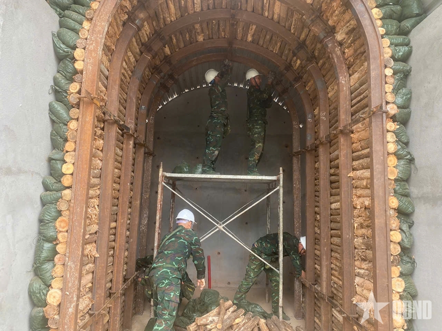 | Lữ đoàn 25, Quân khu 7 tổ chức huấn luyện xây dựng công trình, bảo đảm sở chỉ huy. Ảnh: HOÀNG ANH |
