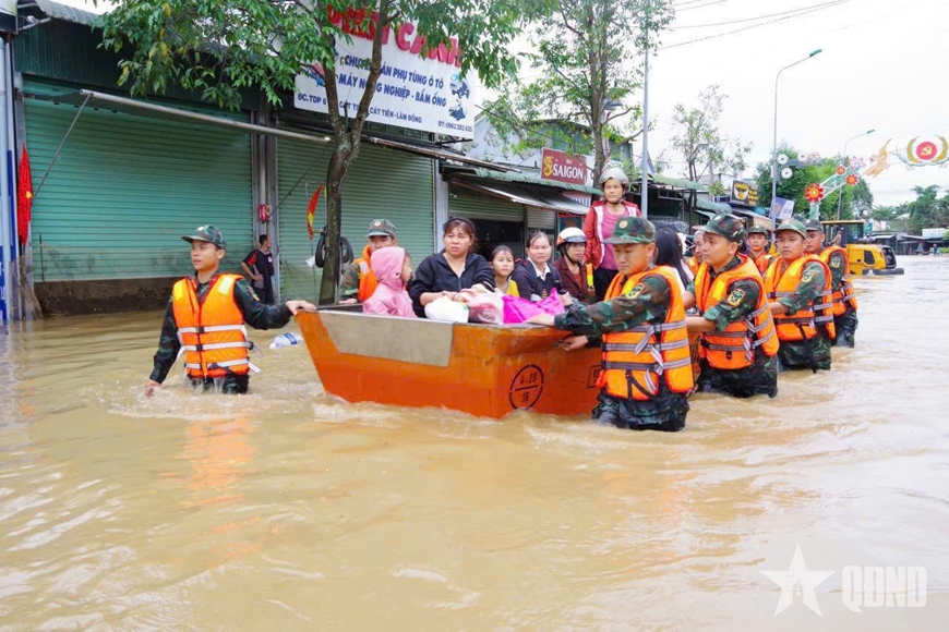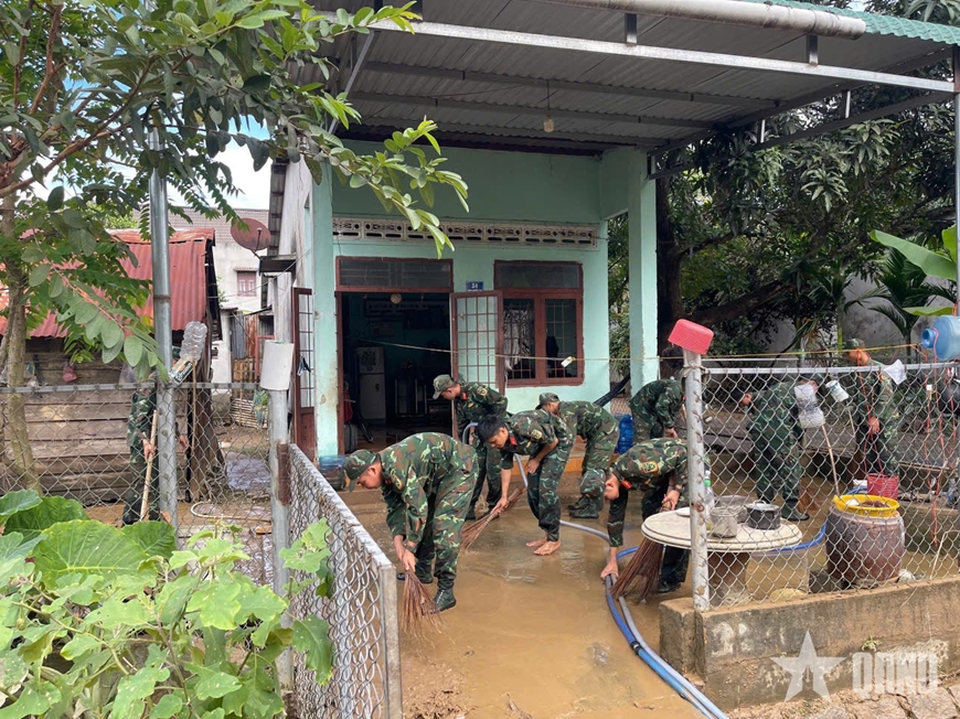| Cán bộ, chiến sĩ Lữ đoàn 25, Quân khu 7 giúp nhân dân khắc phục hậu quả lũ lụt cuối năm 2025. Ảnh: HOÀNG ANH |