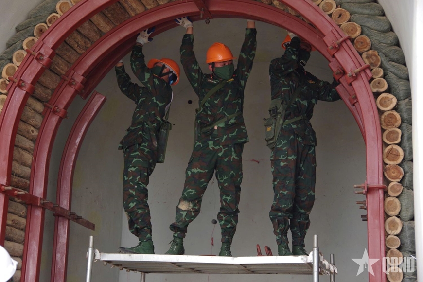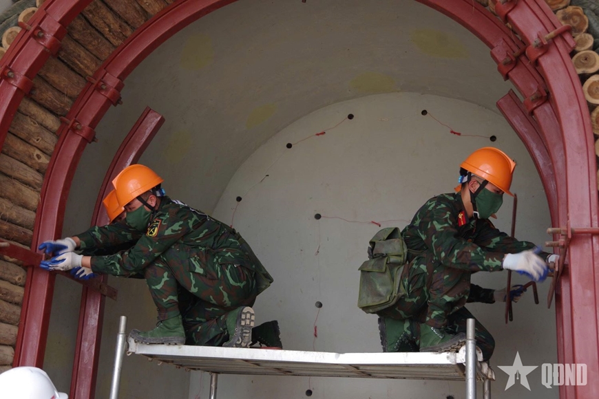 | Đội hội thao Lữ đoàn 575, Quân khu 1 thực hành nội dung thi xây dựng công trình chiến đấu ngày 3-3, sau khai mạc hội thao. |