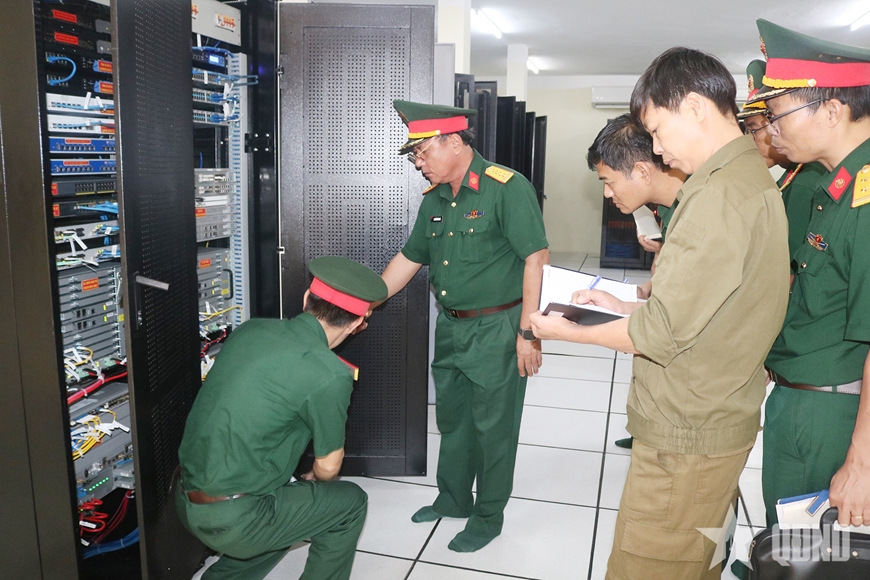 Chỉ huy Lữ đoàn 596 kiểm tra kết quả củng cố thông tin liên lạc tại Tiểu đoàn 133.